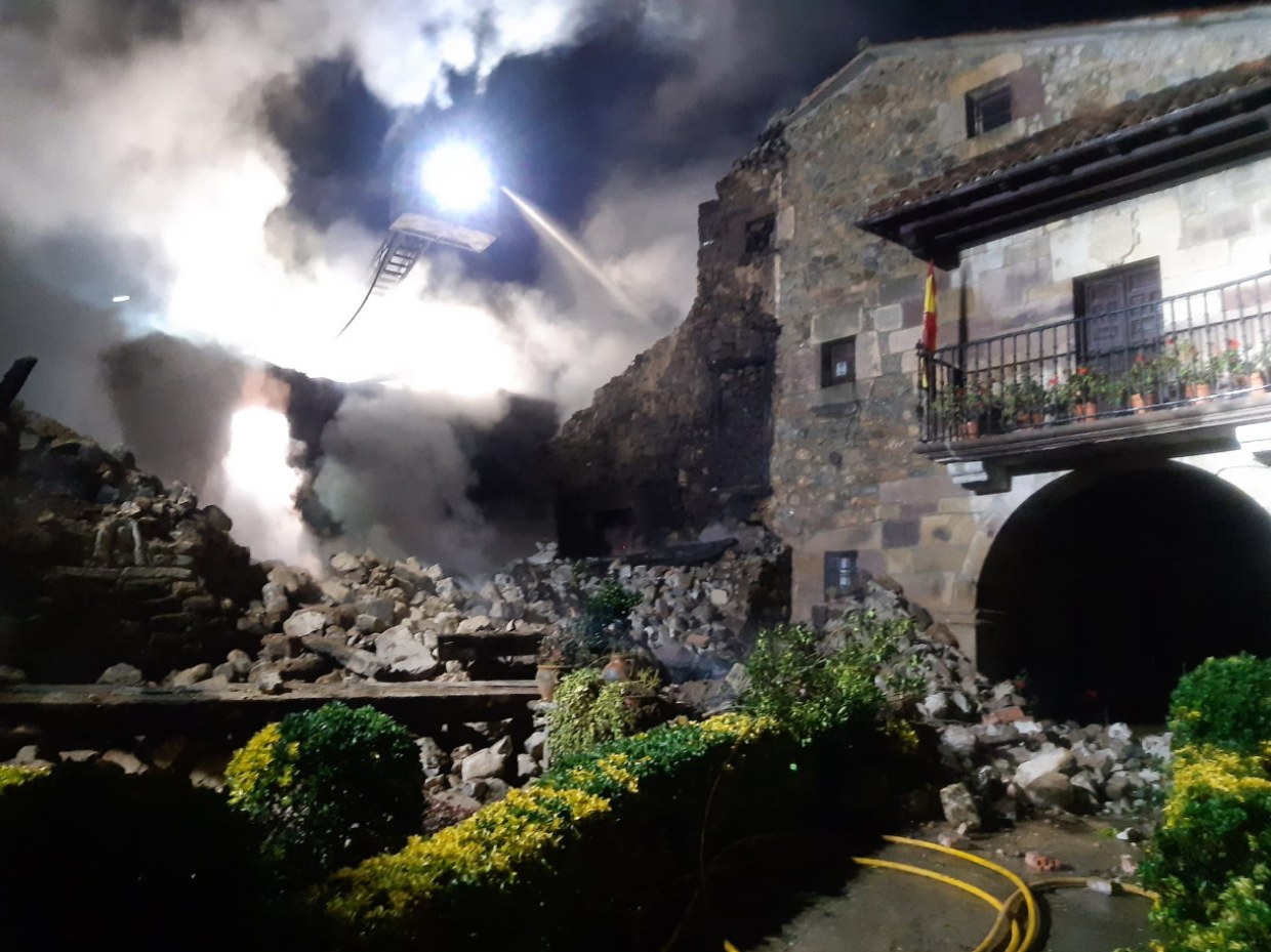 A la llegada de los efectivos del 112 el incendio se encontraba completamente desarrollado, por lo que los trabajos de extinción se centraron, en un primer momento, en cortar la propagación de las llamas a la vivienda anexa, de dos alturas más bajo cubierta, construida en piedra y madera. Controlado el avance del fuego, han sofocado el incendio de la cuadra, y han realizado trabajos de desescombro y refrigeración del área quemada.