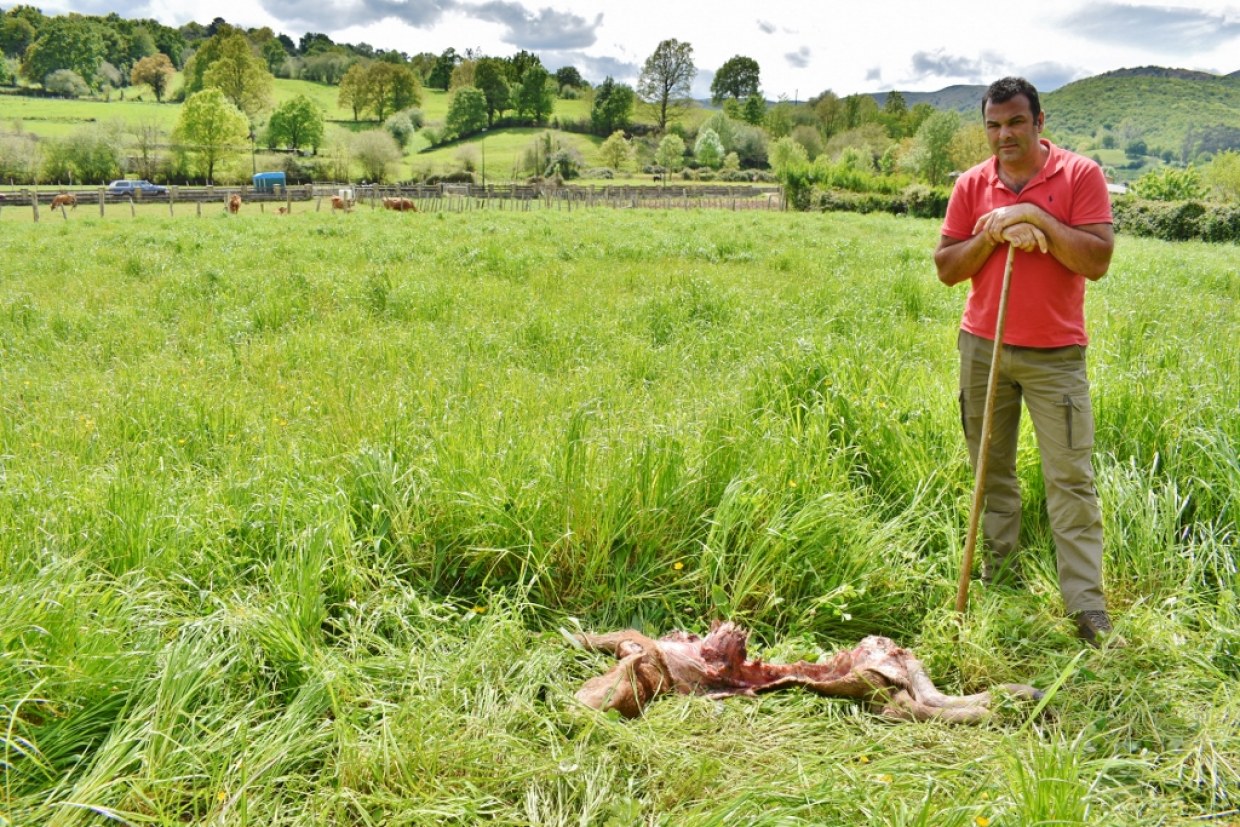 Las vacas mestizas parieron el jueves, cuatro buenos terneros. Cuando Santiago Sañudo fue a comprobar cómo estaban, sobre las seis de la mañana del viernes, se encontró con el ataque de los lobos. Habían entrado a la parcela, bien vallada, y para evitar el ataque de la madre de la ternera, se la llevaron cerca del río. El rastro aún se podía ver horas más tarde.