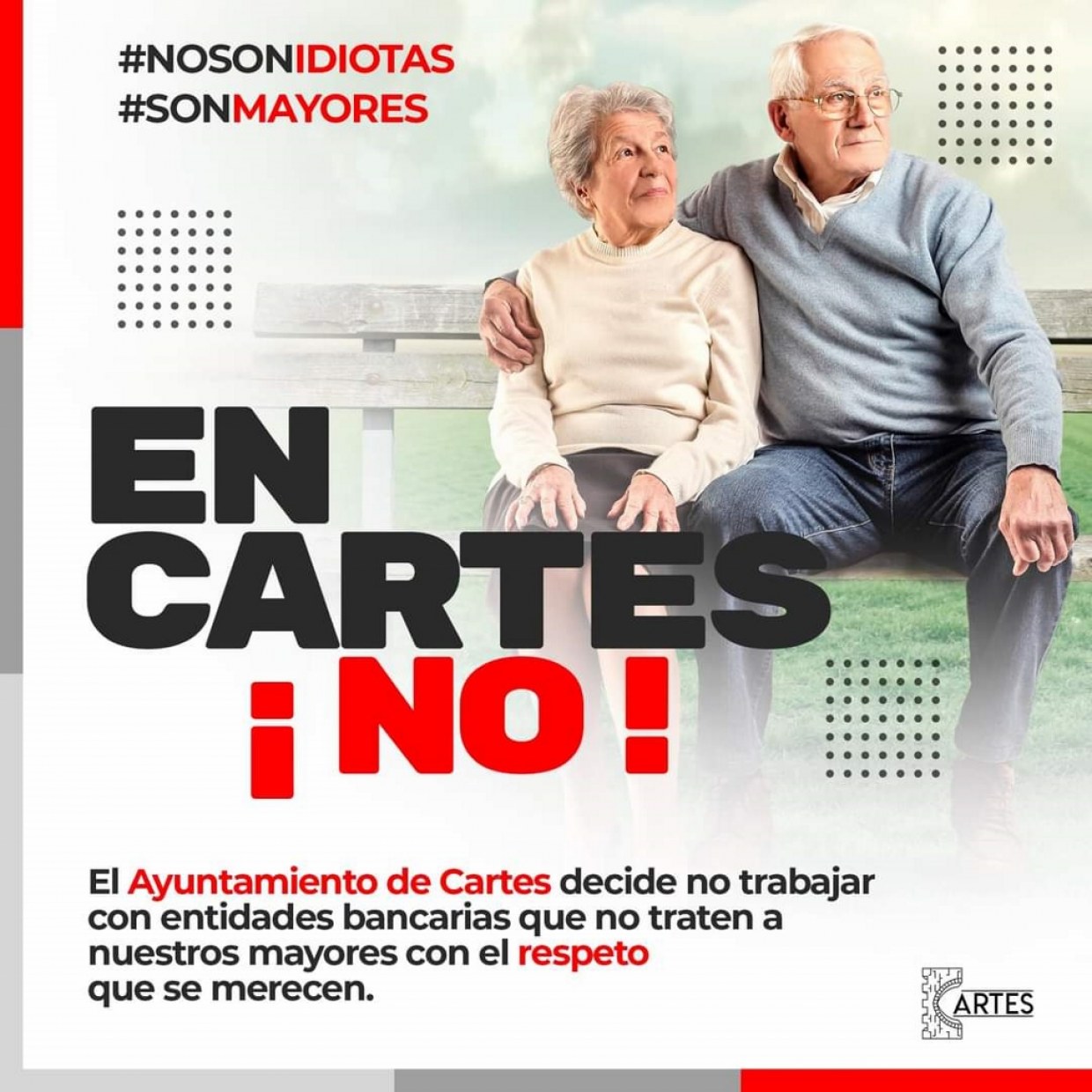 El Ayuntamiento de Cartes ha decidido no seguir trabajando con entidades bancarias que "no traten con el merecido respeto" a los mayores de la localidad. El gobierno cartiego ha lamentado que muchos vecinos le han trasladado sus quejas por el cierre de oficinas bancarias y por el hecho de que sólo se les permita hacer gestiones en los cajeros o por internet. Desde el Ayuntamiento ya se ha afirmado que no se "tolerará" ese criterio, que "perjudica" a sus vecinos de mayor edad.