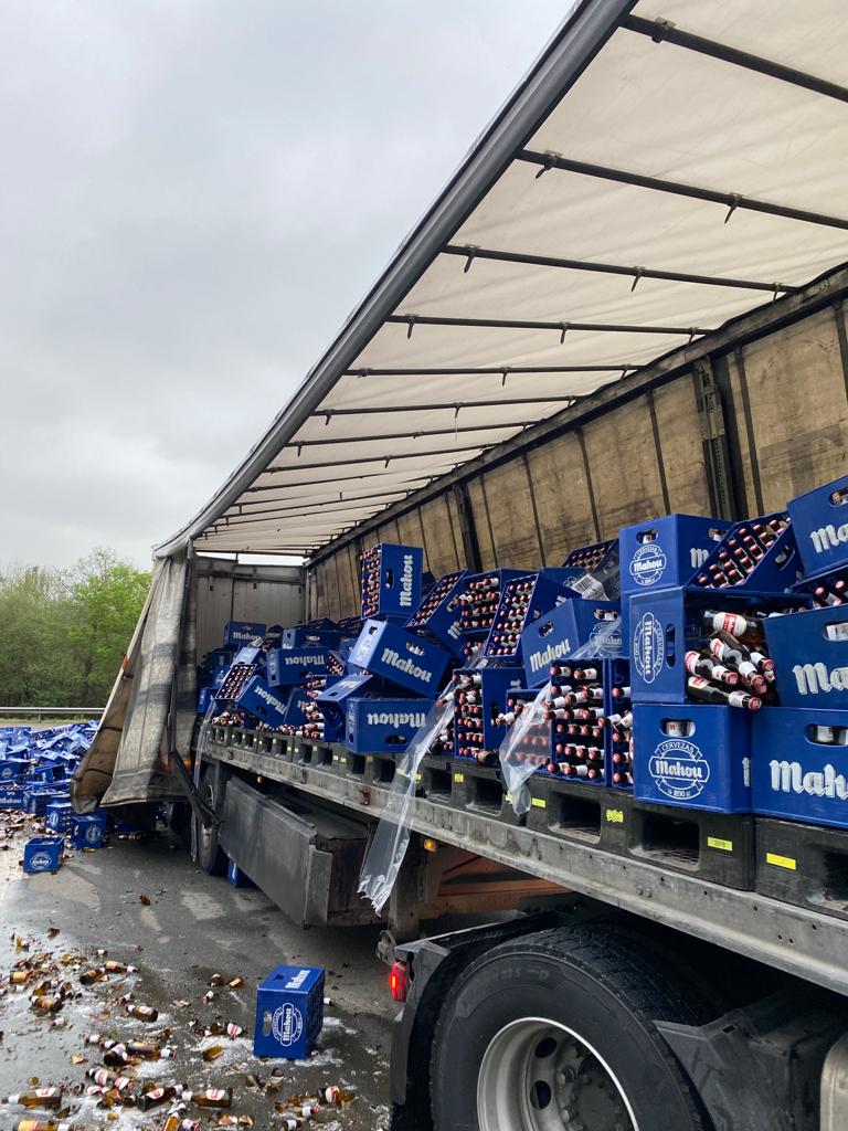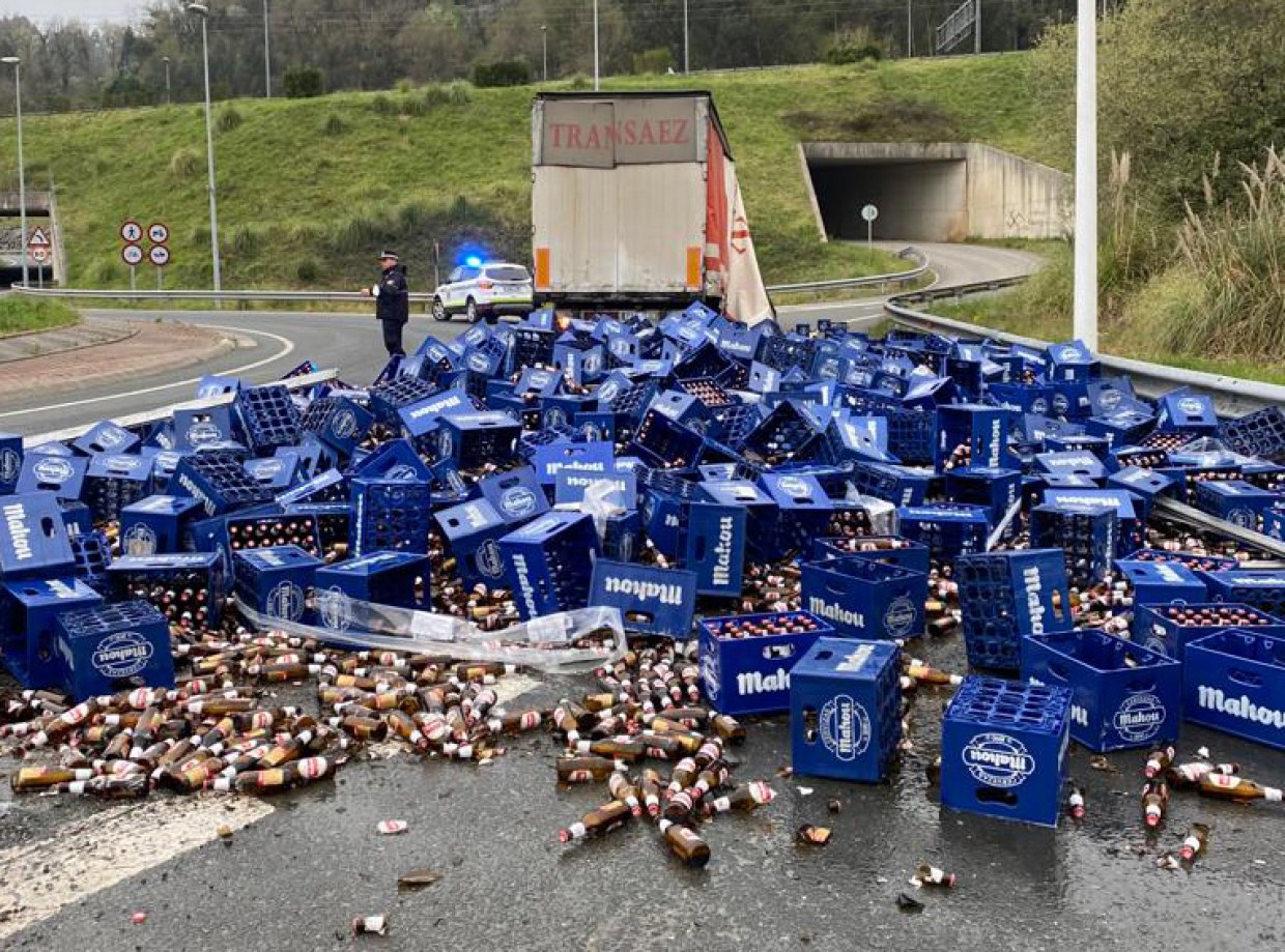 A las 19,15 h. de hoy martes la Policía Local de Los Corrales se desplazó a Barros a requerimiento de un vecino que avisaba de que un camión había perdido gran parte de su mercancía. El trailer circulaba por la rotonda de acceso a la A-67 cuando han fallado las ataduras que sostenían las cajas de cerveza que transportaba. Como consecuencia ha caído a la calzada más de media carga. Los agentes solicitaron la presencia de la Guardia Civil de Tráfico, al ser este tramo competencia de ese cuerpo, y también del servicio de Carreteras para que se procediera a la limpieza de los vidrios caídos en la vía. Afortunadamente, no hubo más consecuencias.
