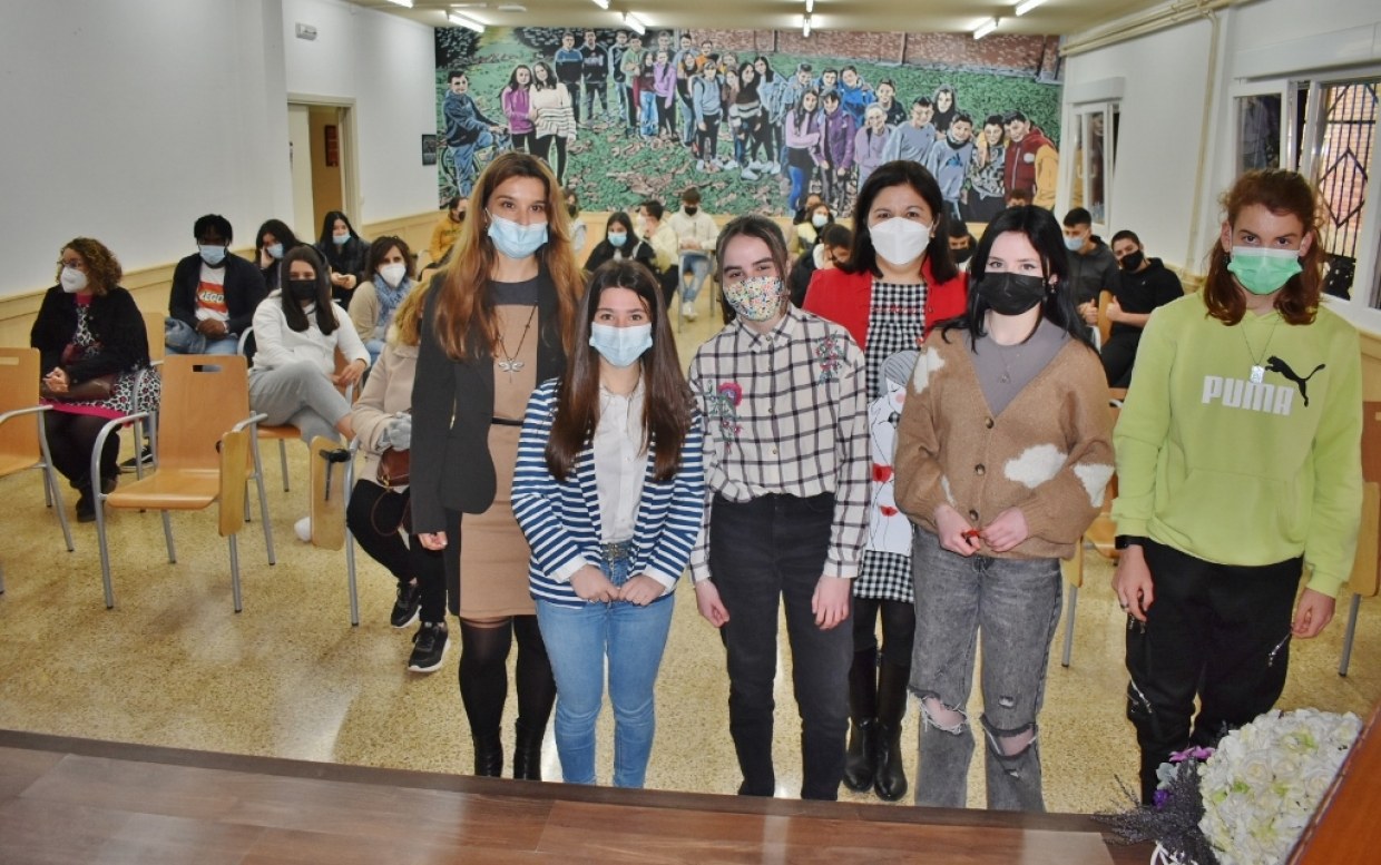 Tras la intervención inicial de la directora anfitriona, Pilar Lobeto, las alumnas y profesoras que han desarrollado la iniciativa han explicado sus principales características ante la autoridades y compañeros del centro en el salón de actos Javier Orbe Cano.