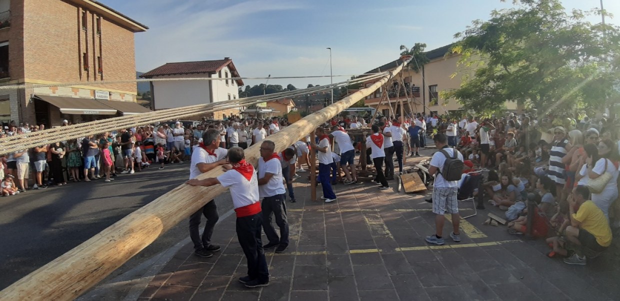 Sergio Balza, el presidente de la asociación, explicó que este año esos troncos son especiales. La Maya ha colaborado con las tareas de recuperación de los robles del monte Canales afectados por la plaga de orugas y lo ha hecho eligiendo dos árboles dañados por esa plaga. "La búsqueda y selección para la Maya ya no se circunscribe a los robles más rectos. Hay escasez de árboles cerca del camino forestal y además queremos colaborar con la regeneración de los robles, por lo que hemos elegido los que están dañados por orugas que esquilman nuestra riqueza forestal. Mantenemos en el monte Canales los sanos y retiramos dos horadados por la oruga, se ha quitado lo dañado, los hemos preparado y unido y los hemos pinado como marca la tradición, sabiendo que además hemos hecho una buena labor", dijo.