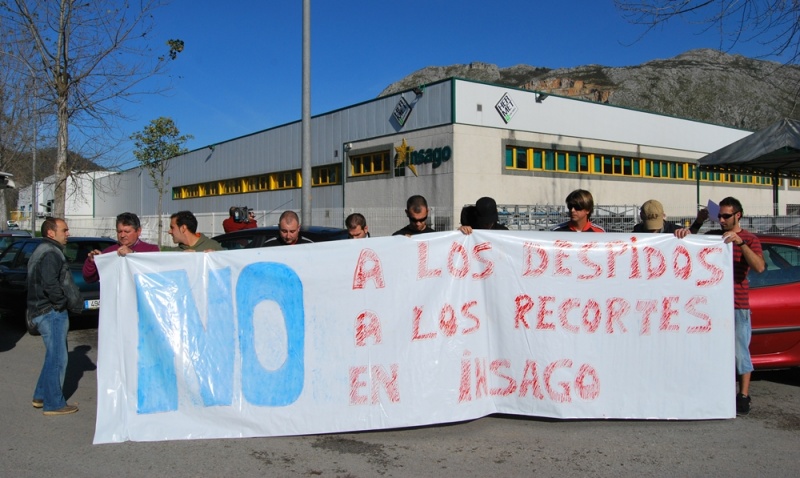 En medio de la negociación entre el Comité de Empresa y la dirección de la planta que Insago tiene en el Polígono Industrial de Barros, sobre su futuro incierto, una decena de trabajadores protestaba este jueves en la entrada por su situación de indeterminación, sometidos a un Expediente de Regulación de Empleo que, según lamentaban, no les permite ni contar con un sueldo digno al final del mes ni rehacer su vida en otros lugares. La situación afecta a 34 trabajadores de los 140 con los que cuenta la planta. Una decena portaba una pancarta que exhibieron en el cambio de turno y que rezaba 'No a los despidos, a los recortes, en Insago'. Explicaron que solo quieren una "solución definitiva". Según señalaban "estamos sujetos a un Expediente de Regulación de Empleo de extinción de contrato a la espera de que Trabajo lo ratifique, y, mientras, la empresa nos está manteniendo en una situación insostenible". Reivindican que se extingan los contratos de una forma definitiva "para poder seguir nuestra vida, si no es aquí en otro sitio". Añadieron que "llevamos desde finales de agosto en esta situación de indeterminación, con un pie dentro y otro en la calle. Y lo que queremos es que nos den lo nuestro y poner fin al vínculo con la empresa. Ahora estamos trabajando 10 días y 20 en casa y no llegamos a los 400 euros al mes en una empresa que ya nos ha dicho que sobramos". Terminaron afirmando que los compañeros que quedan dentro tendrán que acogerse a una reducción de jornada y salario, algo que se está negociando en la actualidad.