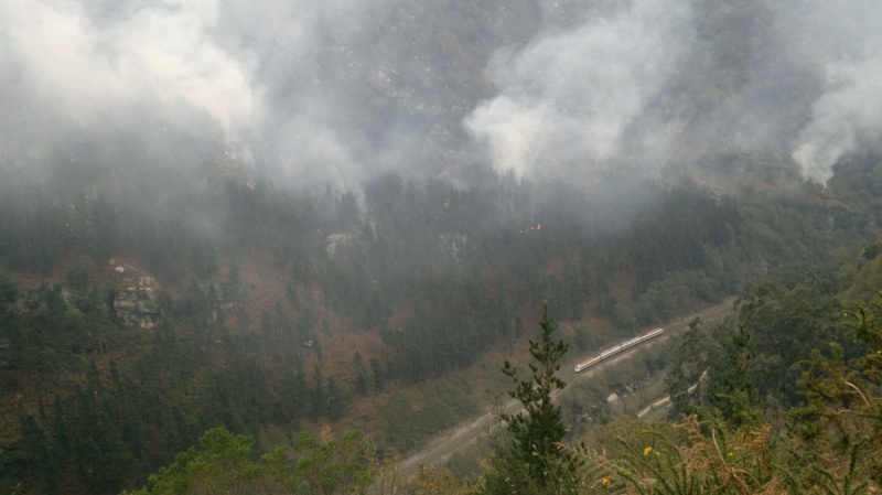 Desde primeras horas de la noche del viernes han ardido más de 10 hectáreas de la cara oeste del Monte Brazo. Además de los numerosos pinos que se han quemado, la destrucción de habitat para la fauna y las plantas de árboles autóctonos que siempre mueren en estos casos, los daños son añadidos por la situación de peligro que se ha generado. La razón es que debajo de esta empinadísima ladera, con pendiente de más de 45º, se encuentra la vía del tren y como consecuencia del incendio, ha ardido la masa vegetal que retiene las piedras. Esta situación ha hecho circular con velocidad reducida a los trenes en el día de hoy sábado y genera un peligro en toda la zona durante un largo tiempo. También ha habido riesgo de que el fuego se propagara hacia otras masas arbóreas del mismo monte. A las 24 horas de haberse declarado el fuego, casi con seguridad intencionado, seguía ardiendo la zona, a pesar de que durante la mañana estuvo trabajando el servicio de extinción de incendios con un helicóptero. La cantidad de humo se ha hecho notar en todo el valle de Buelna ya que el viento sur reinante lo empujaba hacia esta zona. Con el incendio de Lobao, es el segundo del que damos cuenta en pocas semanas.