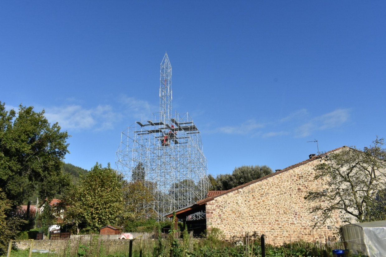 Adrián Gómez Zuloaga, responsable de Andamios AGZ, es el responsable de una estructura "que puede alcanzar cualquier altura". Concretó que son 37 toneladas de material "que permitiría subir más allá de 120 metros". La clave del diseño, dijo, "son las diagonales, con más de 90 apoyos en el suelo", pero insistió en que "hay ingenieros detrás de los cálculos". Incluso se ha hecho una simulación de las peores circunstancias adversas de viento y no habrá problema.