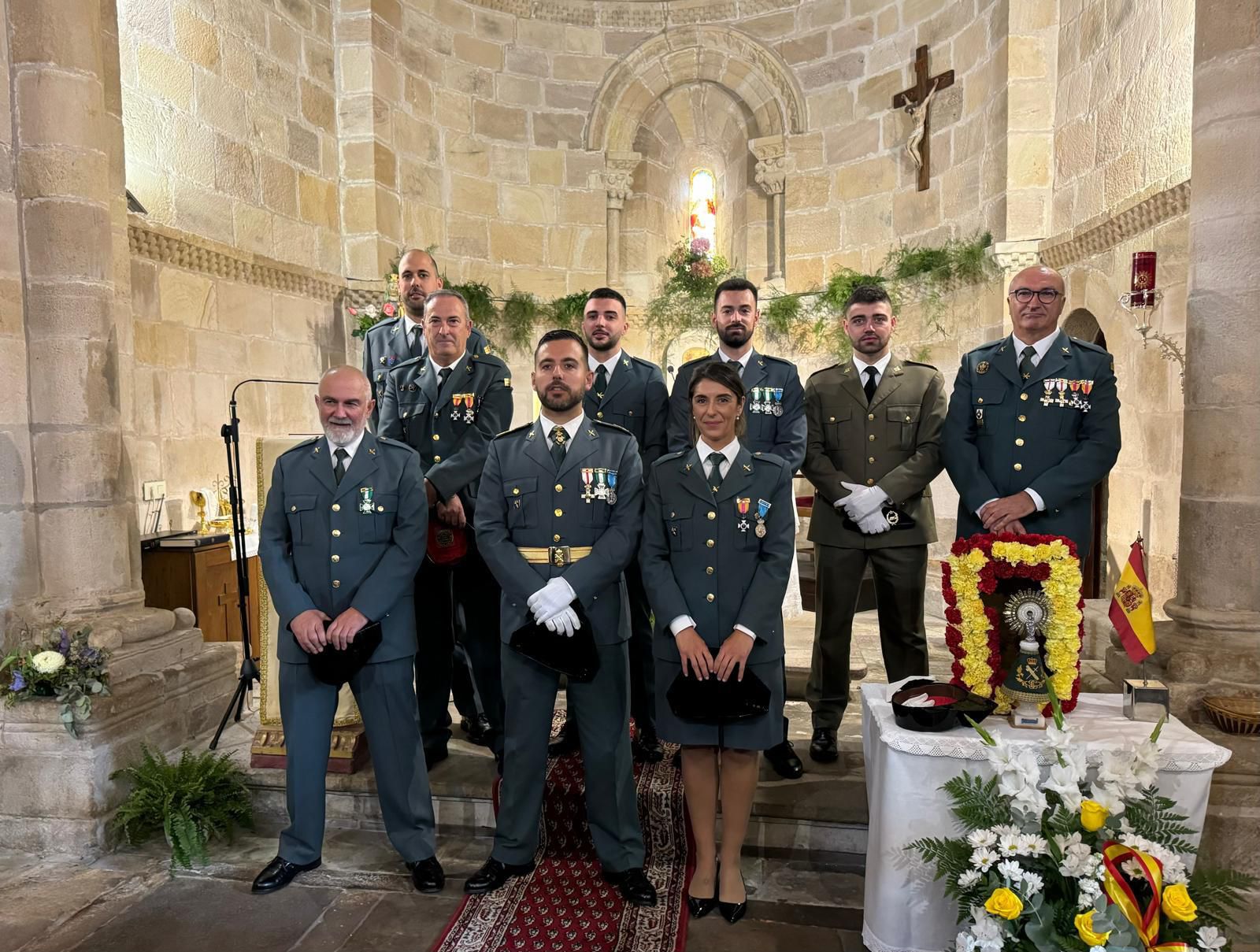 Tras la Santa Misa, en el exterior del templo, se celebró también el Día de la Hispanidad, con un emotivo homenaje a la bandera, izando una gran enseña en el mástil instalado frente a la entrada principal del templo, un izado algo que compartieron el alcalde de Los Corrales y el cabo del cuartel de Los Corrales, Hugo Husillos. También hubo corona de flores en recuerdo a los caídos de la Guardia Civil, en la que participó el concejal de Seguridad Ciudadana, Alfredo Casanova, y el alcalde de San Felices entregó al agente Rubén Bolloque García la medalla que le distingue por sus 30 años de servicio al Cuerpo.