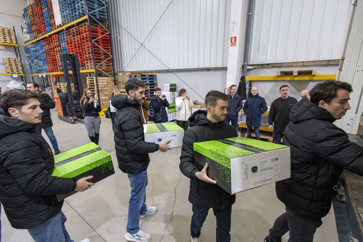 Esta mañana, en su Centro Logístico de Heras, se llevó a cabo la carga de los tres camiones que transportarán los materiales hasta Valencia. En este acto solidario, los jugadores del Bathco Balonmano Torrelavega se sumaron activamente para colaborar en la preparación y carga de la mercancía. El material donado incluye 1.000 lavabos, 200 inodoros, 144 espejos, 1.140 muebles, 200 grifos y más de 6000 accesorios para equipar las zonas de aseo de viviendas y edificios afectados.