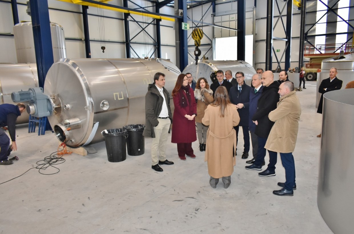 La empresa Intranox Norte, del Grupo Ruiz, ha abierto sus puertas este jueves en el polígono industrial de Barros, una inversión cercana a los cuatro millones de euros en unas instalaciones que llaman la atención por su extensión y altura y que se destinan principalmente a la elaboración de grandes depósitos de acero inoxidables para el almacenaje del vino. Un ámbito al que incorporan un proceso innovador, patentado por el propio grupo, para poder aislar el CO2 que resulta de la fermentación del vino, obteniendo un mejor resultado final.