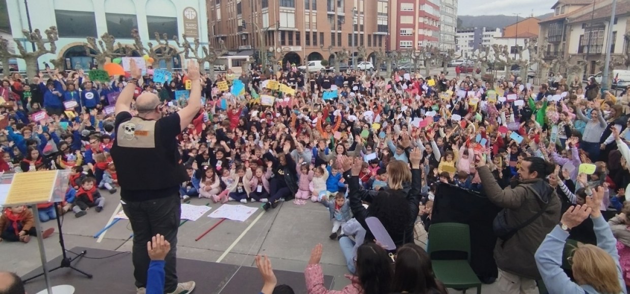 Las comunidades educativas de los colegios Besaya, Gerardo Diego, José María de Pereda y La Salle, junto al CAIA Estelucas, participaron para sumar cerca de 800 personas con un centenar de pancartas grandes y pequeñas, y varios representantes de los alumnos, profesorado y familias para leer los 10 puntos del decálogo de los derechos de los niños a escuchar cuentos.
