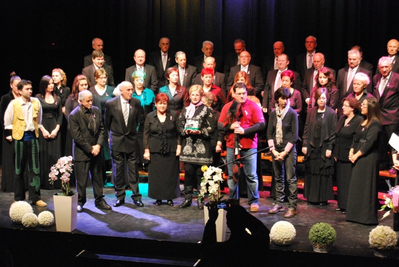 La Coral de Los Corrales de Buelna organizó esta fin de semana un concierto solidario en el que 150 músicos de cinco agrupaciones de música y danza corraliegas se subieron al escenario del Teatro Municipal con el objetivo puesto en recaudar fondos para la fundación científica de la Asociación Española Contra el Cáncer, recaudación que llegó a los 1.497 euros. El acto contó con la actuación de la Escuela Municipal de Música, el Grupo de Gaitas de la Hila, el Grupo de Danzas Entremontañas Virgen de la Cuesta y la Agrupación de Pulso y Púa Fresneda, además de la coral organizadora. Las 360 plazas del teatro se llenaron con un público que aplaudió la entrega simbólica de una hucha a Pilar Saiz Aguayo, responsable actual de la junta local de la Asociación contra el Cáncer, por parte de los representantes de las cinco agrupaciones que se subieron al escenario: Alicia Triguero por la Escuela Municipal de Música; Carlos Cabo por el Grupo de Gaitas de la Hila; Constantino Requejo por el Grupo de Danzas Entremontañas Virgen de la Cuesta; Manuel Rueda por la Agrupación de Pulso y Púa Fresneda; y Marisa Conde y José Antonio Fernández, presidenta y tesorero de la coral organizadora.