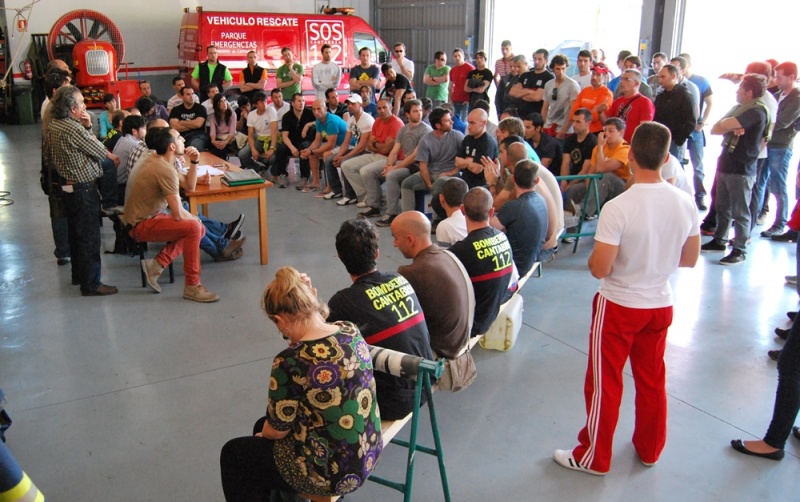 Día complicado para los bomberos en todos los sentidos. El Comité de Empresa del Servicio de Emergencias de Cantabria (SEMCA) trasladó ayer a cerca de un centenar de bomberos su preocupación ante lo que entiende es el inicio del “desmantelamiento” del servicio de bomberos del 112 y la necesidad de movilizarse contra la propuesta del Gobierno regional de presentar un Expediente de Regulación de Empleo que supone el despido de 28 personas de esa empresa pública. Carmelo Renedo, de la Federación de Servicios de Ciudadanía de CCOO, incidió en que “nadie se debe sentir a salvo, porque ellos ya tienen la lista de bajas hecha, lo que supone que el servicio queda tocado, inoperante”, una situación que conduce, señaló el sindicalista, a una “confrontación total”. “Van a por nosotros, ya no somos intocables y estamos todos unidos o lo pasaremos mal”, fue el mensaje de los miembros del comité de empresa. En una asamblea informativa celebrada en el parque de emergencias de Los Corrales de Buelna, se acordó, como primera medida reivindicativa, secundar la huelga general de mañana jueves y, de forma inmediata, movilizarse ante la sede del Ejecutivo regional para reclamar una reunión con el presidente de Cantabria, Ignacio Diego. No hubo disidencias entre los asistentes, prácticamente todos los miembros de la plantilla a excepción de quienes hacían guardia en sus respectivos parques. El centenar de bomberos presentes avaló las decisiones del comité y expresó su intención de apoyar las medidas que se vayan tomando en el futuro. En cuanto al ERE, rechazaron los motivos aducidos por la Consejería de Presidencia, asegurando que ha sido el propio Ejecutivo el que ha reducido la partida del 112 “que ahora presenta como insuficiente” para mantener una plantilla que “no estamos dispuestos a reducir ni en un solo miembro”. Comité y representantes sindicales de CCOO y UGT coincidieron en asegurar que el equipo de Ignacio Diego está cambiando el modelo del servicio de urgencias para terminar entregándolo a una empresa privada. Y también coincidieron en algo que se repitió en varias ocasiones, asegurar que “ya no hay nadie intocable con la Reforma Laboral”. Carmelo Renedo afirmó que las auditorías presentadas para explicar las bajas en el servicio están “amañadas, porque quieren hacer limpieza como con los judíos”. Y aseguró que la Consejería de Presidencia tiene “odio visceral” al servicio. Por su parte, Guillermo del Corral, de la Federación de Servicios de UGT, llamó a denunciar un “cambio de valores que convertirá a la gran mayoría de cántabros en ciudadanos se segunda” al carecer en sus pueblos de los servicios de urgencia. Reducir en 28 miembros el servicio “es desmantelarlo, porque no se puede prescindir de uno solo”, aseguró. El presidente del comité, David del Valle, el secretario, Pablo Ramos, y el representante de CCOO en el comité, Guillermo Río, incidieron en que “no daremos un paso atrás, con vuestro apoyo estamos dispuestos a lo que sea en la defensa de un servicio esencial y básico como lo puede ser la Educación o la Sanidad”. “No nos queda más remedio que salir a la calle y pedir públicamente una reunión con Diego porque, quiero pensar, que no es conocedor de la merma del servicio que supone este recorte”, dijo David del Valle.
