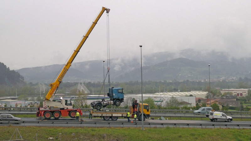Nuevo accidente en kilómetro 172 la autovía A-67. En la mañana de hoy sábado 28, un camión de una empresa de recuperaciones metálicas de la comarca, que circulaba en sentido Palencia, ha sufrido un vuelco 50 metros antes de llegar a la salida hacia Los Corrales, quedando apoyado sobre un lateral en el carril izquierdo de la autovía. En el momento de producirse el accidente llovía en Barros y el camión, una `cabeza tractora´, circulaba sin remolque. Parace que estos hechos han podido influir en el accidente y vuelco del vehículo. Sobre las 11,15 de la mañana, una grúa retiró el vehículo de la calzada. Desconocemos en este momento si el conductor sufrió daños personales.