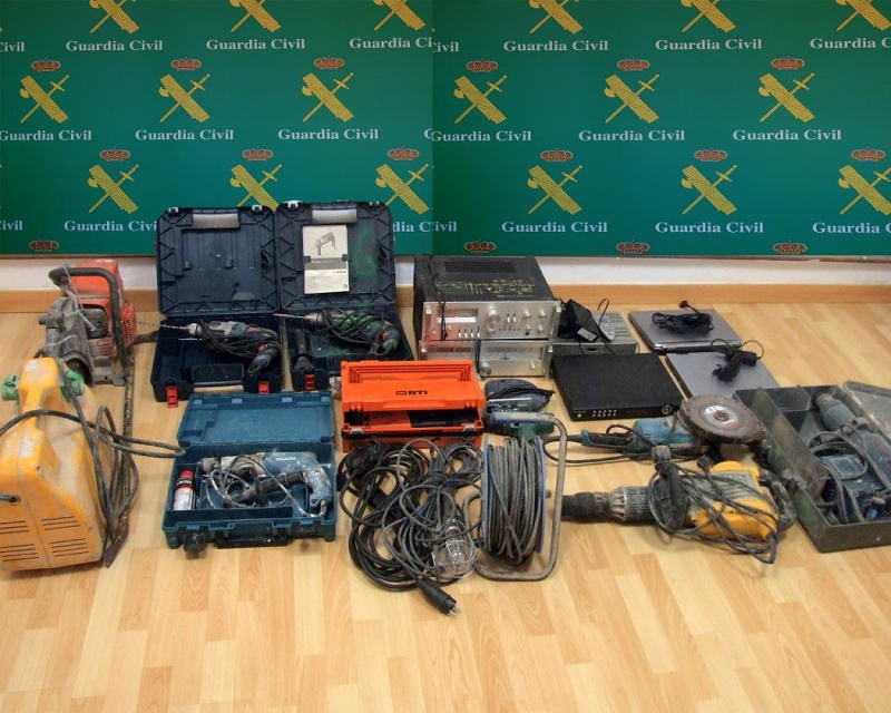 Localizado el garaje en el mismo se encontraron diferentes herramientas como taladros, rotaflex, motosierra, sierra de calar, un generador de corriente, alargaderas, así como ordenares portátiles y otros efectos electrónicos, siendo todo ello intervenido.