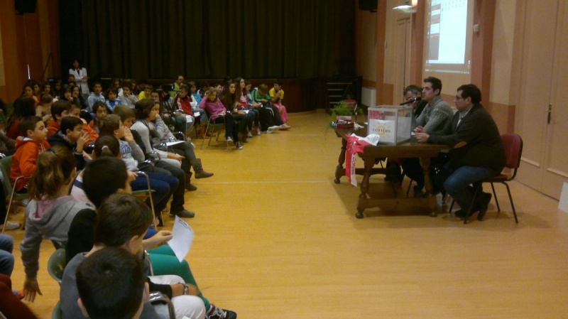Ha sido un sencillo momento de intercambio, de invitación al alumnado a potenciar los valores deportivos que potencian el desarrollo personal. Acto adornado por diferentes vídeos, sorteo de un maillot, reparto de regalos, fotografías, firma de camisetas y gorras, etc.