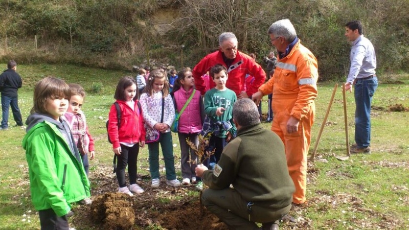 El Servicio de Montes del Gobierno de Cantabria aportó los árboles y las enseñanzas sobre una buena plantación y conservación de las especies elegidas para esa ocasión. También recibieron información sobre el necesario cuidado de los entornos naturales y sobre uno de los montes más importantes del centro de Cantabria, que además de la riqueza natural que alberga, con un espectacular bosque fundamentalmente de robles y hayas, también acoge uno de los campamentos romanos más importante de España y la cueva de Hornos de la Peña, declarada Patrimonio de la Humanidad por su arte rupestre.
