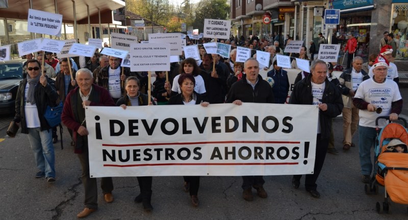 Tras un lema tan claro como ‘Devolvednos nuestros ahorros’, cerca de 600 personas se concentraron este sábado en Los Corrales de Buelna contra la venta de las participaciones preferentes por Liberbank. Entre un sinfín de pancartas, grandes y pequeñas, los manifestantes reclamaron el reintegro de sus inversiones invocando el apoyo de todos los estamentos, administraciones e instituciones.