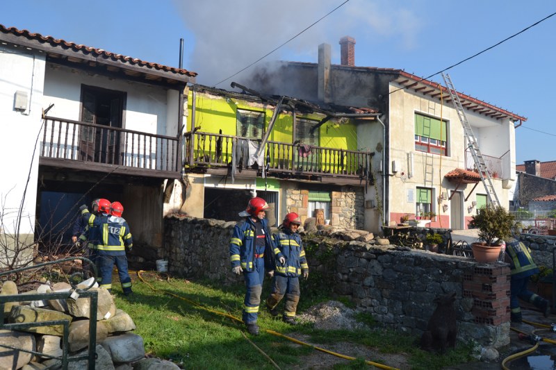 Sobre las cinco y media de la madrugada se inició, por causas que aún se desconocen, un fuego en la parte destinada a almacen de una de las viviendas. Las llamas crecieron con rapidez y enseguida llegaron al tejado. Eso fue lo que salvó a la pareja de inquilinos, que oyeron el crujir de las tejas y pudieron abandonar la casa de forma inmediata, con lo puesto, porque reconocieron que nada pudieron recuperar. Llevaban algo más de un año viviendo en esa casa y la estaban rehabilitando poco a poco, como contaron los familiares de la propietaria, Carmen, también muy afectada. Lo mismo que Pilar Ortiz, dueña de la casa anexa al lugar donde se originó el fuego. Temió perder "todo por lo que he luchado en mi vida", como reconocía en su salón. Apenas quería ver los daños del incendio. Hubo suerte y aunque el fuego se trasladó a su vivienda por las vigas de madera no causó daños cuantiosos. Eso sí, los bomberos han solicitado la intervención de los técnicos municipales para valorar las consecuencias en la parte norte de la casa, dedicada también a almacén. El calor y el fuego próximo había afectado a las paredes y soportes, por lo que habrá que analizar esos daños.