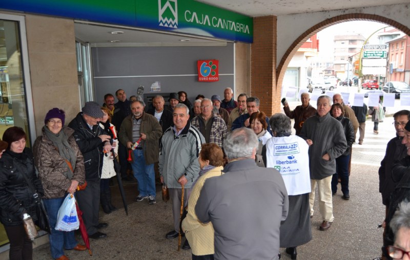 Los vecinos de Los Corrales de Buelna echaron en falta hoy miércoles los campanos, pitos, carracas, bocinas y cánticos que desde hace un año marcaban la jornada en el centro de la localidad, dentro de las protestas continúas de la plataforma de afectados por la venta de participaciones preferentes frente a la sede de Liberbank en la comarca. Lo mismo había sucedió lunes y martes en Arenas de Iguña y sucederá en San Felices de Buelna.