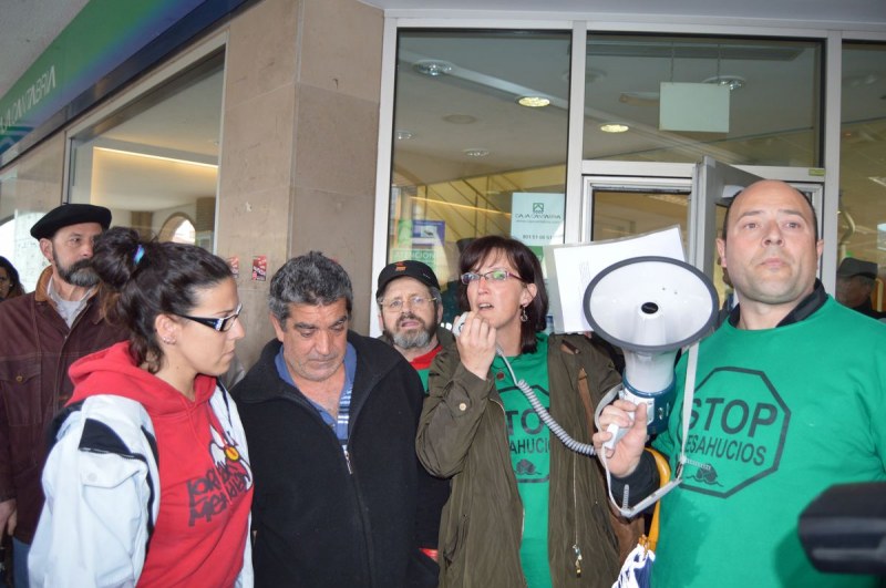 A las 10 de la mañana del viernes comenzaba la concentración en la sede de Liberbank en Los Corrales de Buelna. Siete guardias civiles y un guardia jurado contemplaban como iba creciendo tanto el número de personas congregadas como la tensión. Poco después de las 10 de la mañana Rita, su padre, y miembros de los colectivos de afectados entraban en la oficina. Los cánticos seguían en la calle. "Ni gente sin casas, ni casas sin gente", "se va a acabar el desahuciar", coreaban los concentrados. Sobre las 10.45 Elena Prado, portavoz de esos afectados daba la noticia. Había acuerdo por escrito. Liberbank suscribía el compromiso de que no intentará ningún lanzamiento hasta el 2 de junio para facilitar a los afectados que aporten la documentación necesaria para revisar su caso, condenar la deuda y acceder a un alquiler social que no deje en la calle a una familia que no tenía más que esa casa, una vivienda social en el centro de Los Corrales de Buelna. Habían accedido a ella en 1998, con lo que, según los representantes de las plataformas, "la vivienda está más que pagada". El matrimonio, con dos hijos mayores, llegó de Portugal hace 28 años, con lo que son más que conocidos en la localidad. El tiene en la actualidad un trabajo temporal, pero la situación es crítica desde hace meses.