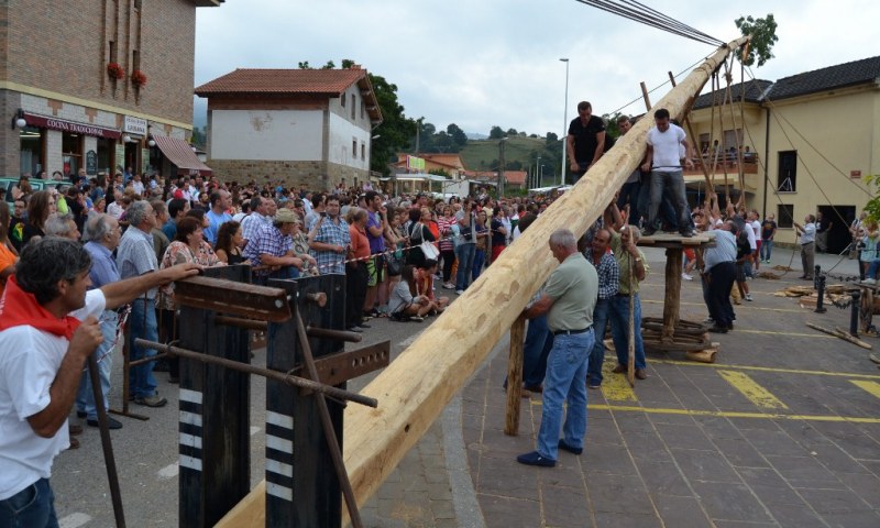 Lo volvieron a hacer a la vieja usanza, con más esfuerzo que en otras ocasiones por la presencia de un invitado tan especial como poco habitual, el calor. Al final, tras más de una hora de esfuerzo continuado, descansando solo para recolocar los aparejos, lograron poner en pie, a golpe de riñón, la Maya. A ratos empujando, a ratos preparando los andamios de madera, a ratos tensando las cuerdas, todo a golpe de brazo, entre aplausos y más de un susto de los cientos de visitantes. Pero al final el hombre se impuso y el gran tronco ya ejerce de mástil de la bandera de las tradiciones en la plaza principal del pueblo.