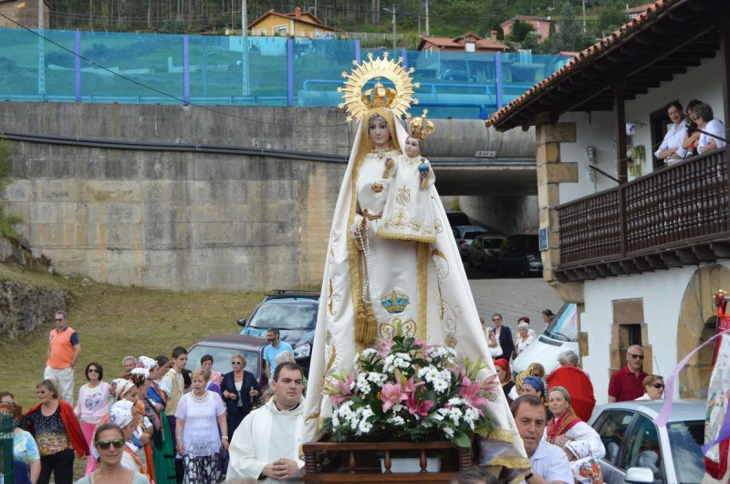 Tras la misa, la imagen de la Virgen salió en procesión por la calle La Cuesta, hasta la avenida de Cantabria y regresando por el barrio de La Turquía de nuevo a su lugar en el santuario. Los numerosos vecinos del barrio y devotos de la patrona de Los Corrales acompañaron en la comitiva. Tampoco faltó representación municipal con la alcaldesa Mercedes Toribio a la cabeza y numerosos concejales de su equipo de gobierno.