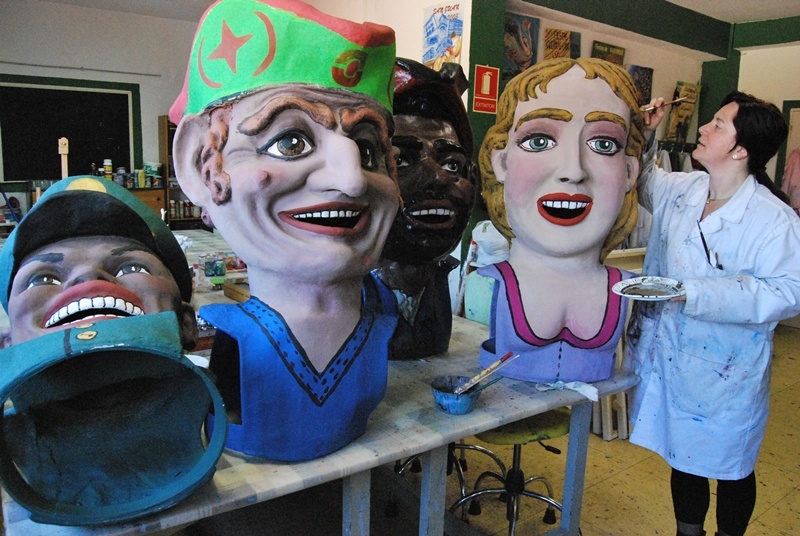 Cintia González Hoyos, directora de la Escuela Municipal de Arte, ha sido la artífice de la restauración de los cabezudos clásicos de Los Corrales de Buelna, tras más de tres décadas perdidos en los almacenes municipales. Rubén García, presidente de la Sociedad Cultural Rebujas de San Mateo, es el culpable de haberlos buscado, encontrado y entregado para su reparación. Y el Ayuntamiento el instigador de su definitiva restauración. El concejal de Cultura, Valentín Aguado Quintial, acogió la idea de la peña Rebujas y la directora de la escuela municipal zanjó el asunto con un proyecto avalado por todos y que ya ha dado el resultado esperado. Cintia González explicó que en principio los viejos cabezudos tenían apolillado el aro que sujeta la figura y la aguanta sobre los hombros del portador. Fue la primera acción sobre ellos. Hubo de sustituir esas sujeciones, a la vez que se trabajaba a fondo con la estructura en general, tras muchos años de esperar de nuevo la luz en lugares nada apropiados. Es papel maché y "bastante han aguantado", apunta la directora de Arte. Están hechos sobre papel de periódico, material tan deteriorado que ya incluso dejaba ver las noticias que recogía la prensa en el momento de su confección original. Agujeros, rayones, deformaciones, han ido desapareciendo con el tratamiento de la directora de la escuela, aplicando pastas especiales, pinturas, barniz. Con todo, se ha recuperado la forma original, eso si, tras pulir, lijar la superficie, y volver a hacerlo una y otra vez, cada una con más cuidado. La decoración ha llegado al final, también manteniendo el formato original. Y, lo que más llama la atención es verlos aflorar de nuevo, desatando los recuerdos de los que hace tres, cuatro décadas eran unos niños, pero que han seguido manteniendo en sus cabezas los miedos de cuando, en aquellas fiestas de San Juan, no faltaban los cuatro cabezudos de Los Corrales de Buelna. Aún faltan pequeños detalles, pero ya se ve el resultado final, y aquellos que entran en la Escuela de Arte coinciden en sus reacciones: los pequeños se apartan en la medida de lo posible y los mayores recuerdan las carreras que dieron tras las escobas de los cabezudos. Por lo demás, cargar con ellos no será demasiado engorroso. Metro y medio de alto y unos cinco kilos de peso. Eso sí, nunca está de más tener una buena formación física. Por lo que pueda pasar.
